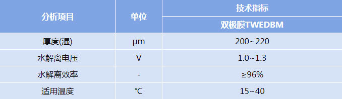 備注:上述數據均為參考值,而非離子膜的性能保證值,表格中的數據可能變更。