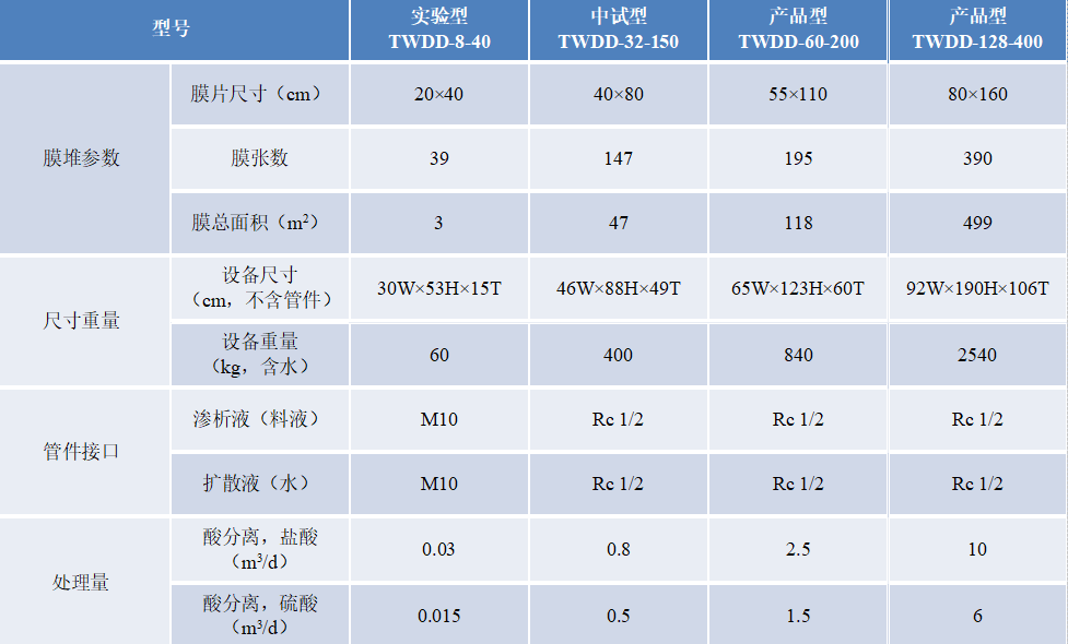 將擴散滲析陰膜、滲析室隔板以及擴散室隔板按一定順序排列起來,在兩側(cè)放置配水板并用夾緊板夾緊的分離酸的設(shè)備。