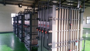 通過擴散滲析設備分離出的堿濃度偏低,通過均相膜電滲析進行回收堿液的濃縮,可以提高堿的濃度,進行回用。